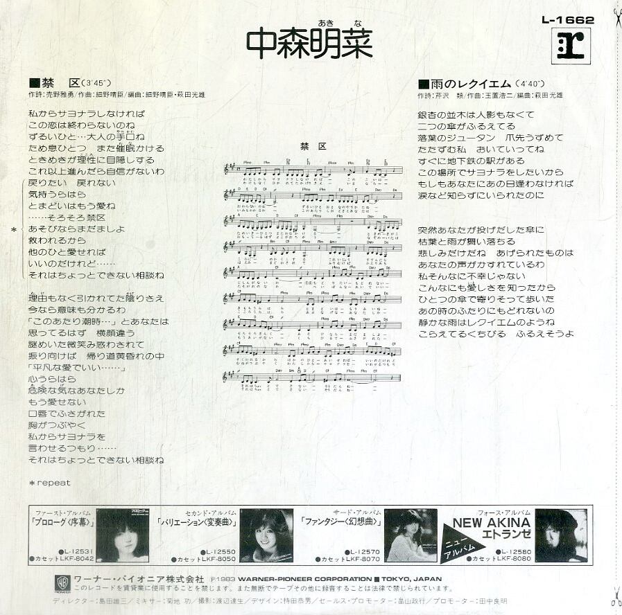 タイトル:禁区 / 雨のレクイエム (1983年・細野晴臣作編曲・玉置浩二作曲)