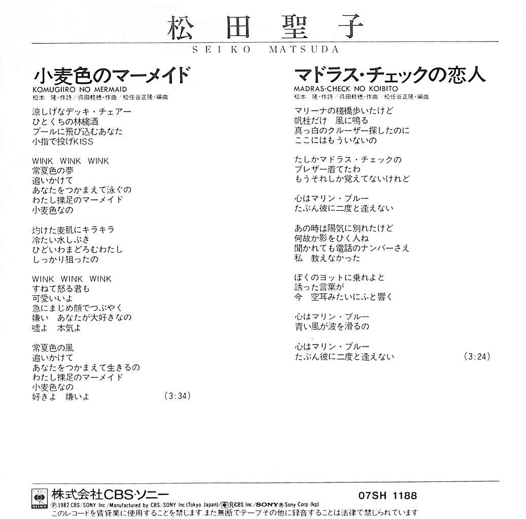 タイトル:小麦色のマーメイド/マドラス・チェックの恋人(1982年・松任谷由実作曲・松任谷正隆編曲・松本隆作詩)