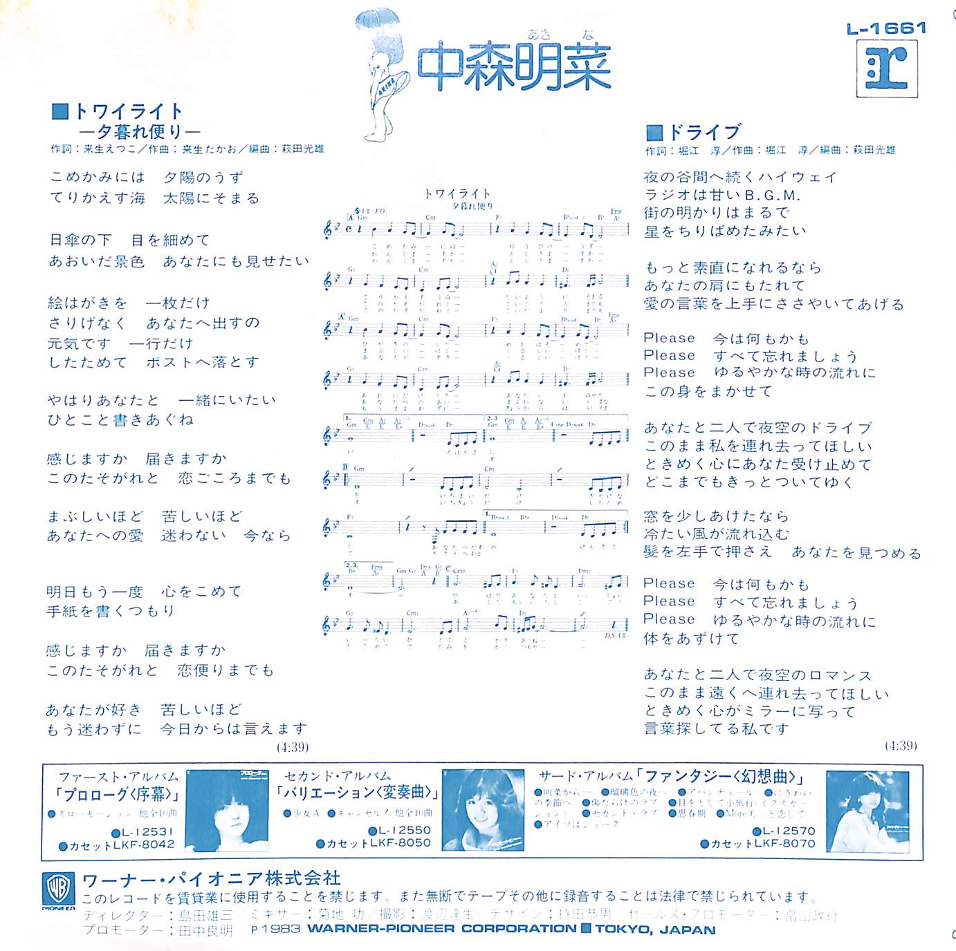タイトル:トワイライト -夕暮れ便り- / ドライブ (1983年)