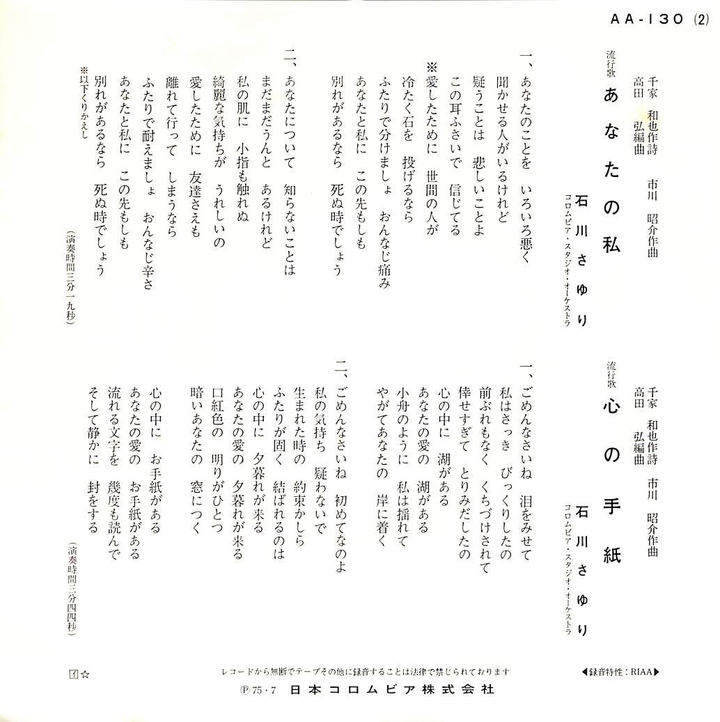 タイトル:あなたの私/心の手紙(1975年)
