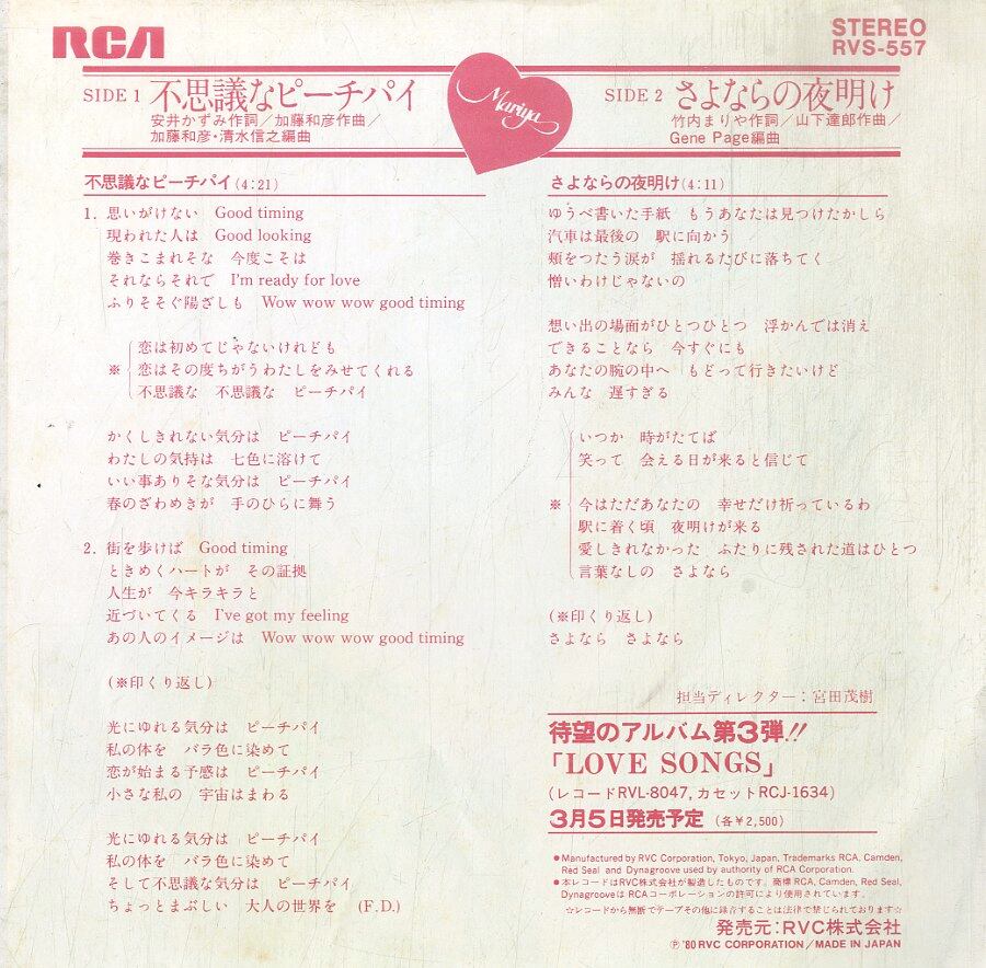 タイトル:不思議なピーチパイ / さよならの夜明け (1980年・加藤和彦・山下達郎作曲)