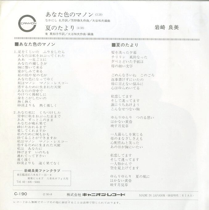 タイトル:あなた色のマノン / 夏のたより