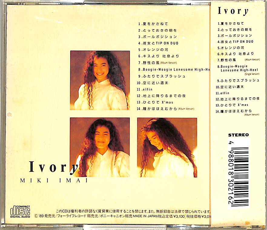 タイトル:Ivory アイボリー(1989年・ベストアルバム・山梨鐐平・中崎英也・筒美京平・柿原朱美・上田知華作曲・久石譲・佐藤準・武部聡志編曲・秋元康作詩etc)