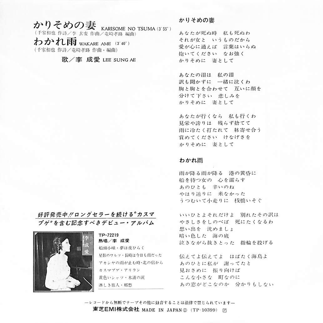 タイトル:かりそめの妻 / わかれ雨(韓国演歌・コリアングルーヴ)