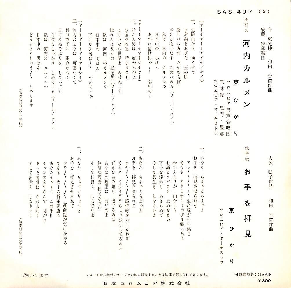 タイトル:河内カルメン / お手を拝見