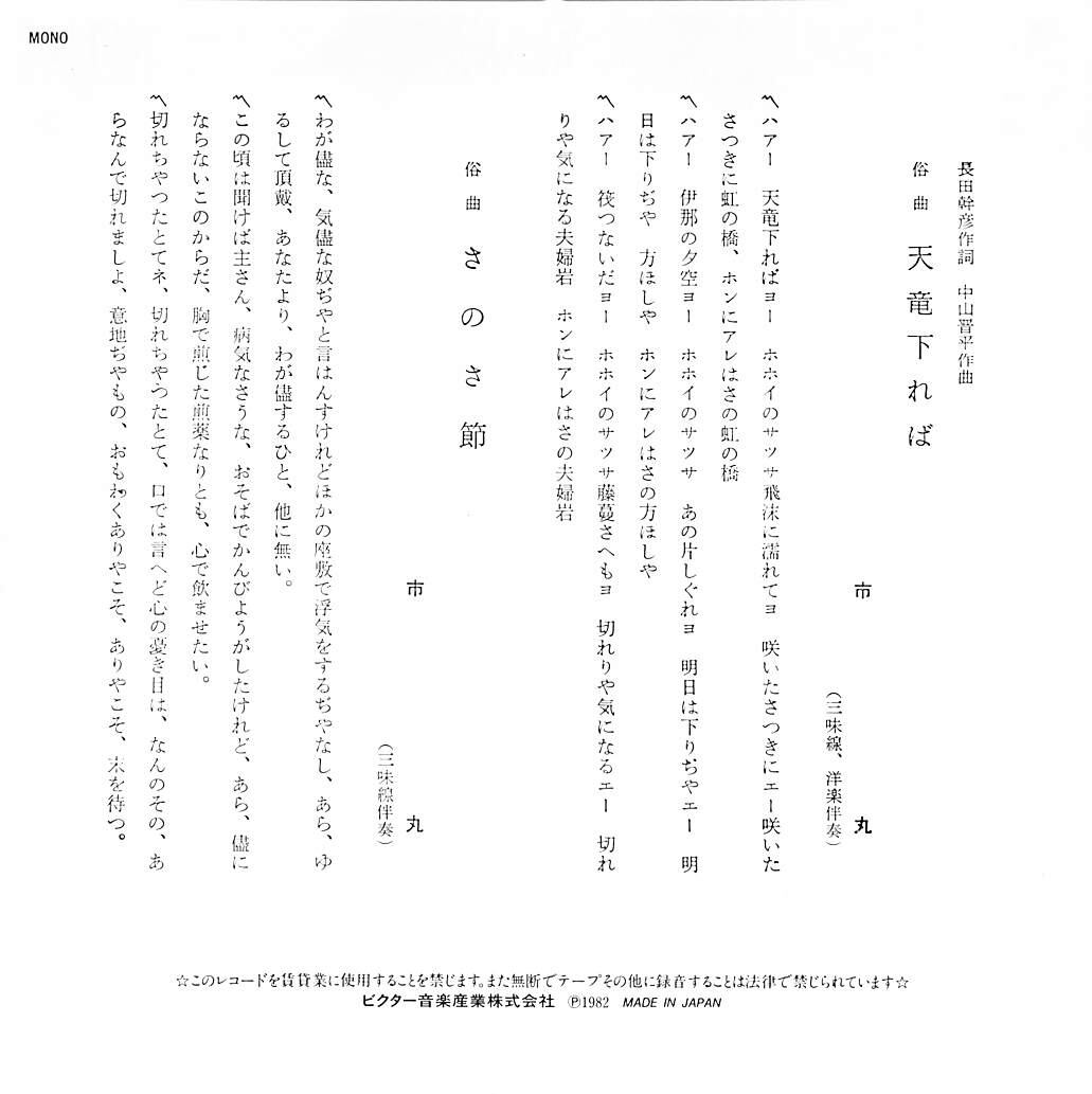 タイトル:天龍下れば / さのさ節