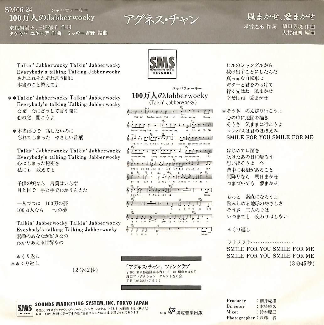 タイトル:100万人のJabberwocky(作曲:タケカ ユキヒデ 編曲:ミッキー吉野) / 風まかせ、愛まかせ