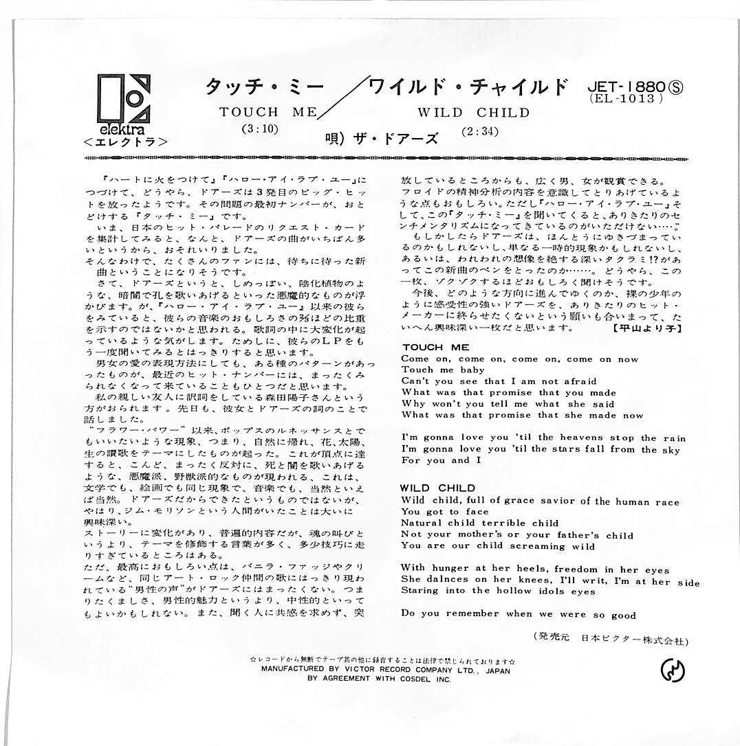 タイトル:Touch Me / Wild Child (1968年・サイケデリックロック)