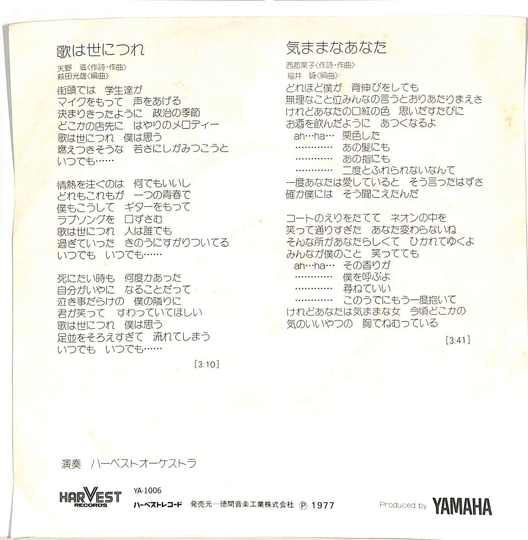 タイトル:歌は世につれ / 気ままなあなた(1977年・NSP天野滋作詩曲・B面オリジナル作)