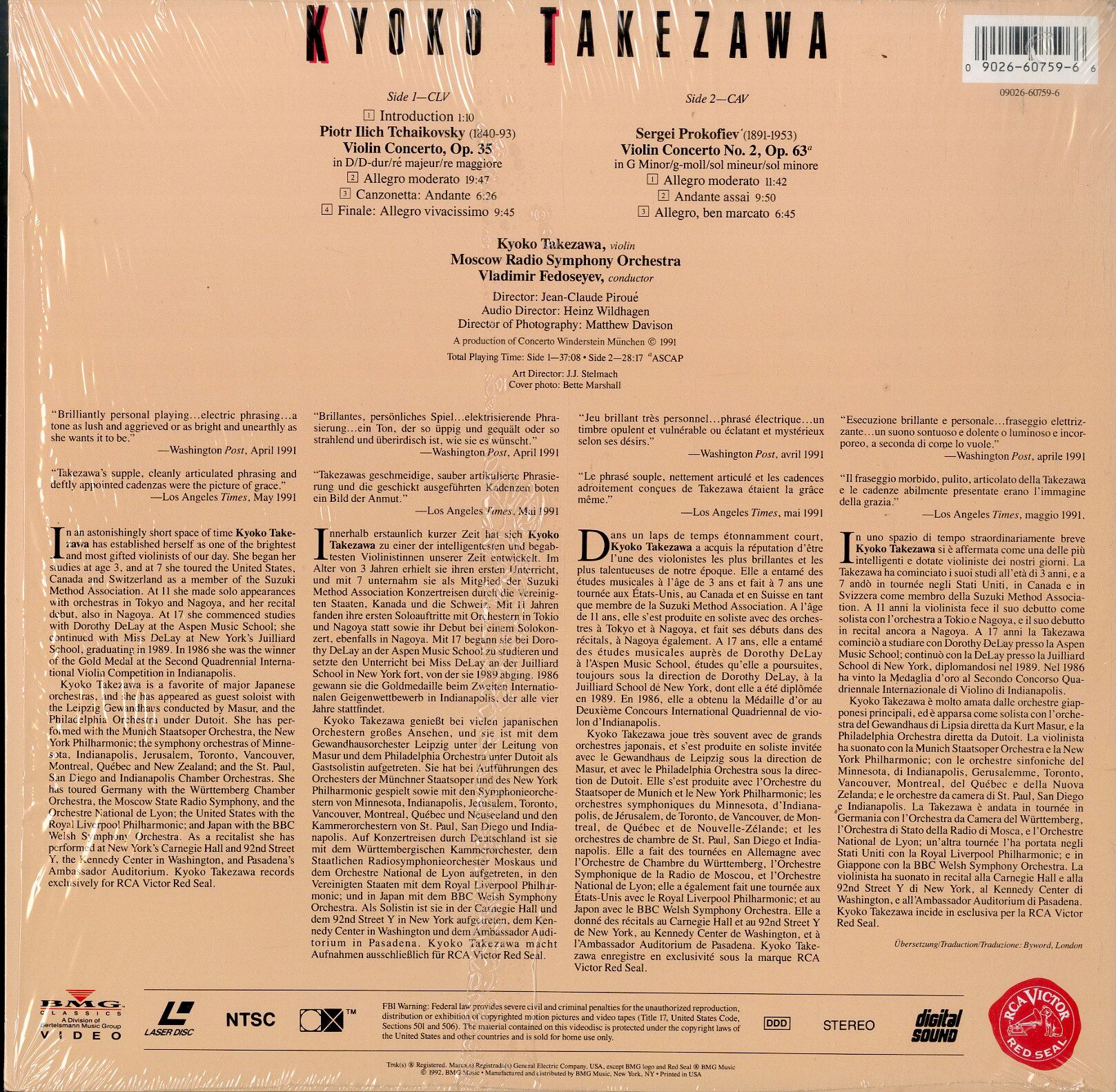 タイトル:チャイコフスキー&プロコフィエフ ヴァイオリン協奏曲 (1993年)