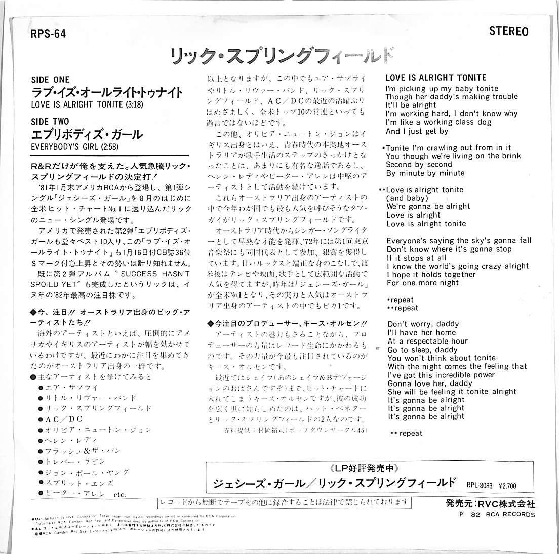 タイトル:ラブ・イズ・オールライト・トゥナイト / エブリボディズ・ガール(1982年)