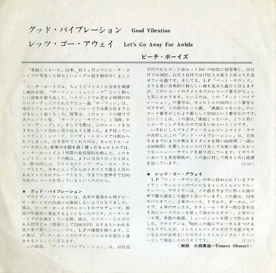 タイトル:Good Vibration / Lets Go Away For Awhile (1966年・サーフ・SURF)