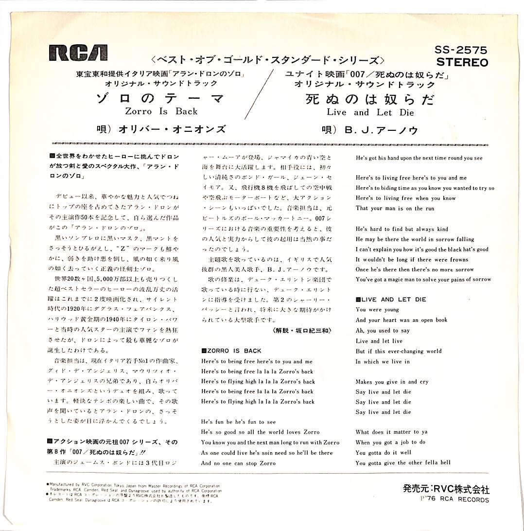 タイトル:ゾロのテーマ / 死ぬのは奴らだ OST