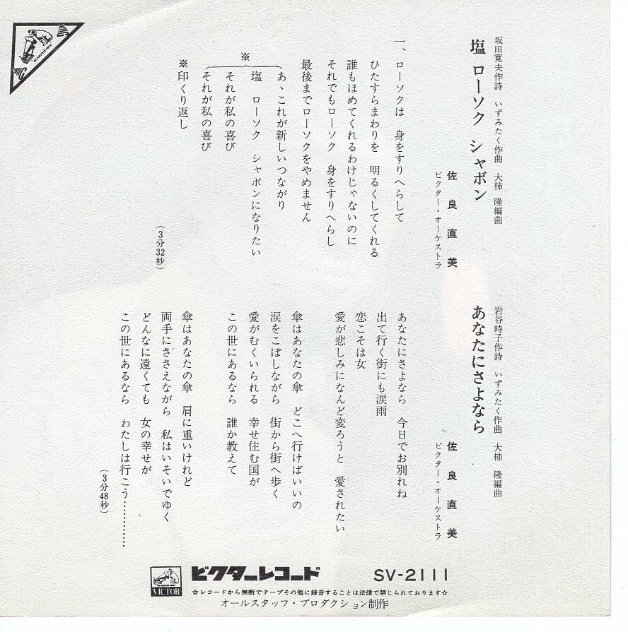 タイトル:塩ローソクシャボン / あなたにさよなら