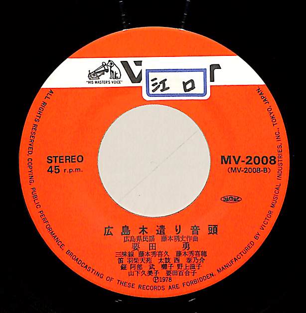 タイトル:広島県民謡 広島ヤッサ / 広島木遣り音頭 (1978年・民謡・ご当地ソング)