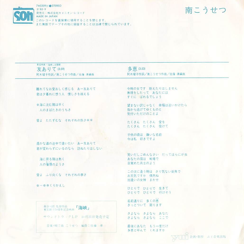 タイトル:海峡 主題歌 友ありて / 多恵 (1982年・サントラ・佐藤準編曲)