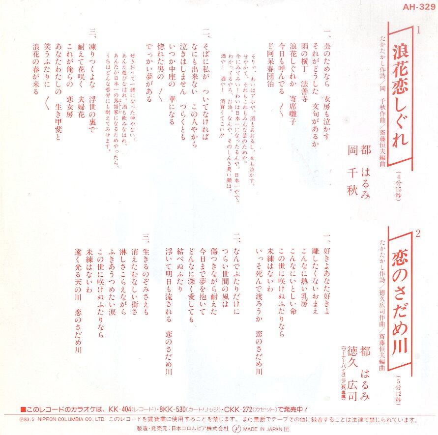 タイトル:浪花恋しぐれ / 恋のさだめ川