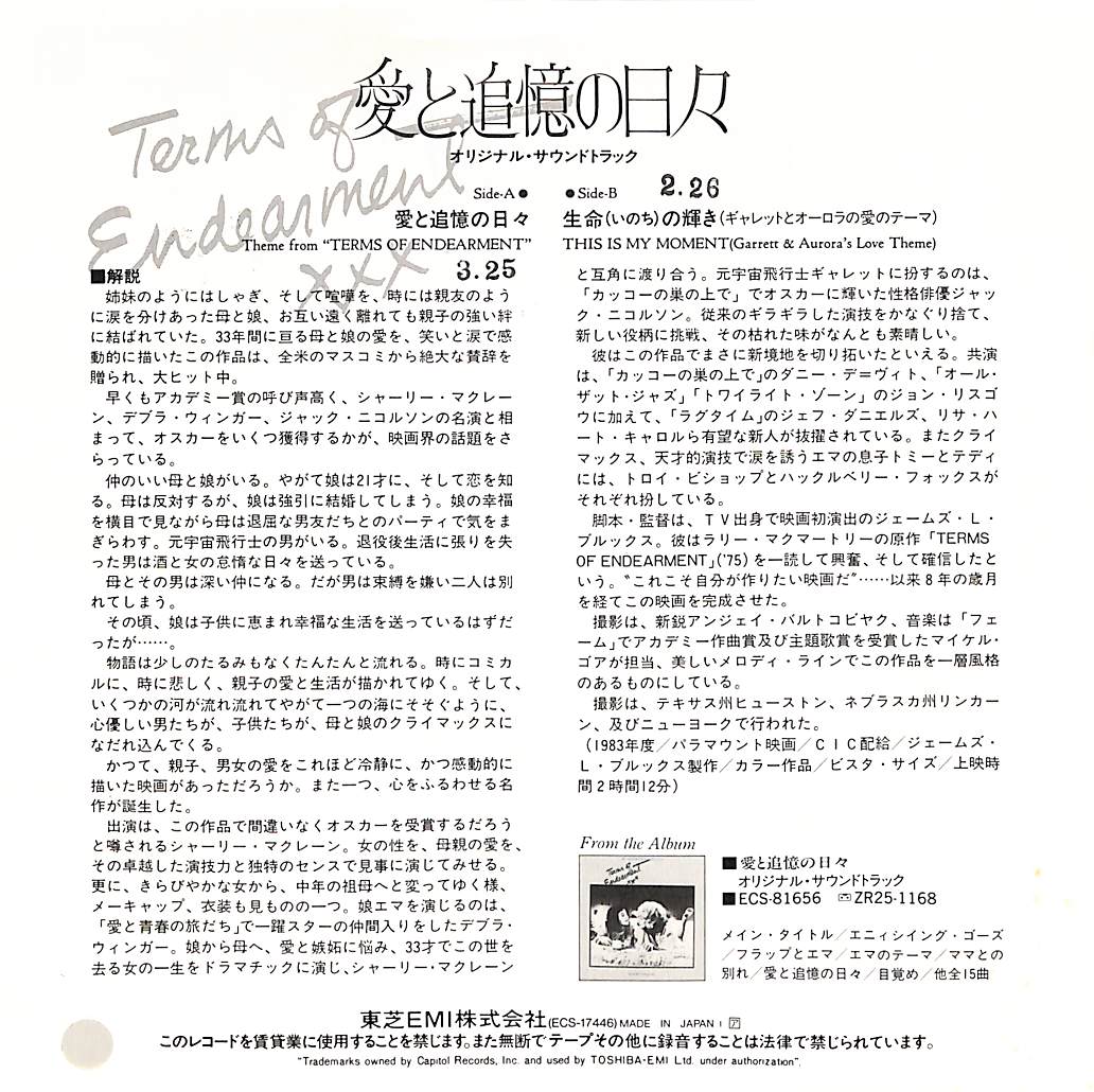タイトル:愛と追憶の日々 / 生命の輝き(ギャレットとオーロラ愛のテーマ)