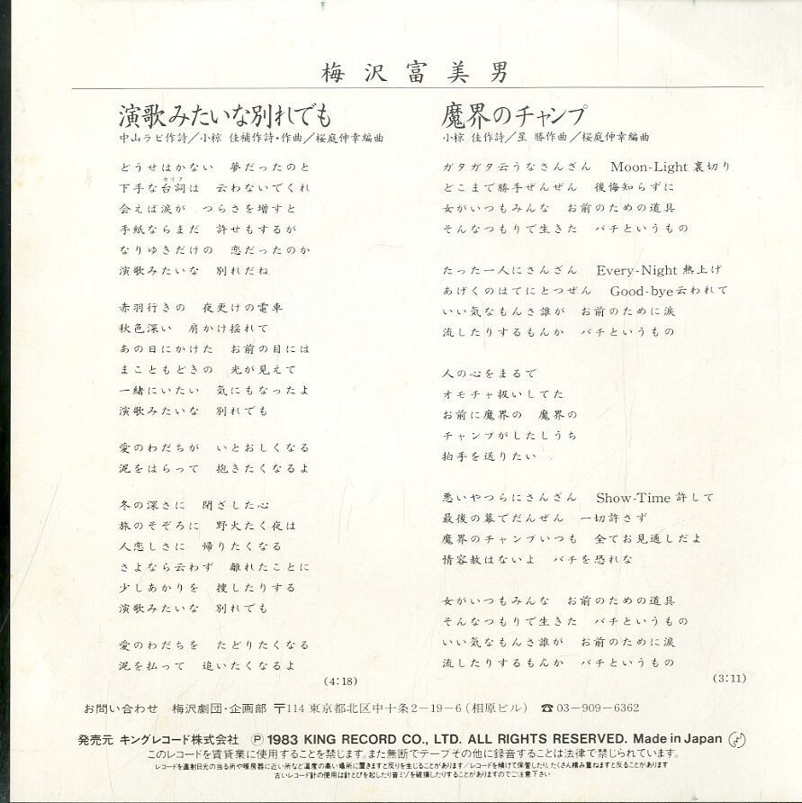 タイトル:演歌みたいな別れでも / 魔界のチャンプ(1983年)