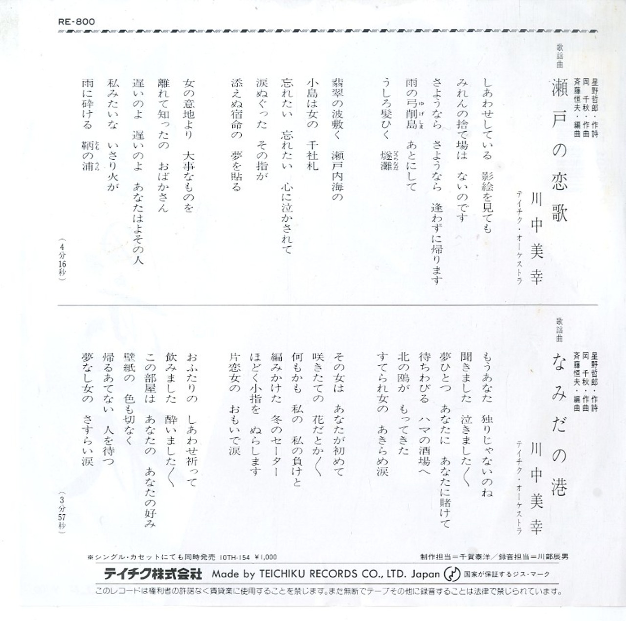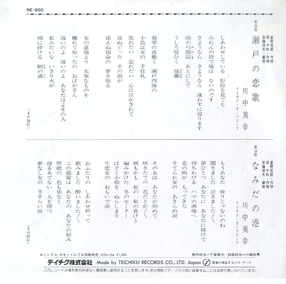 タイトル:瀬戸の恋歌 / なみだの港