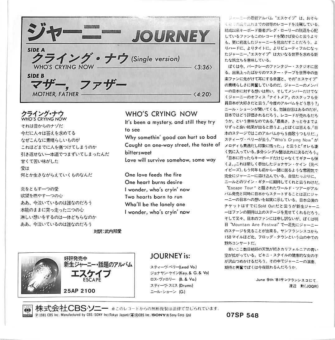 タイトル:クライング・ナウ / マザー、ファザー(1981年)