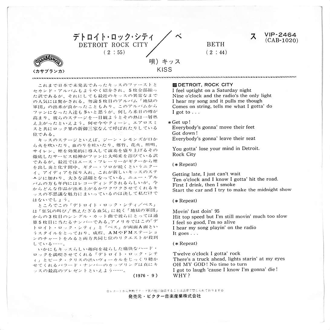 タイトル:Detroit Rock City / Beth (1976年・ハードロック)