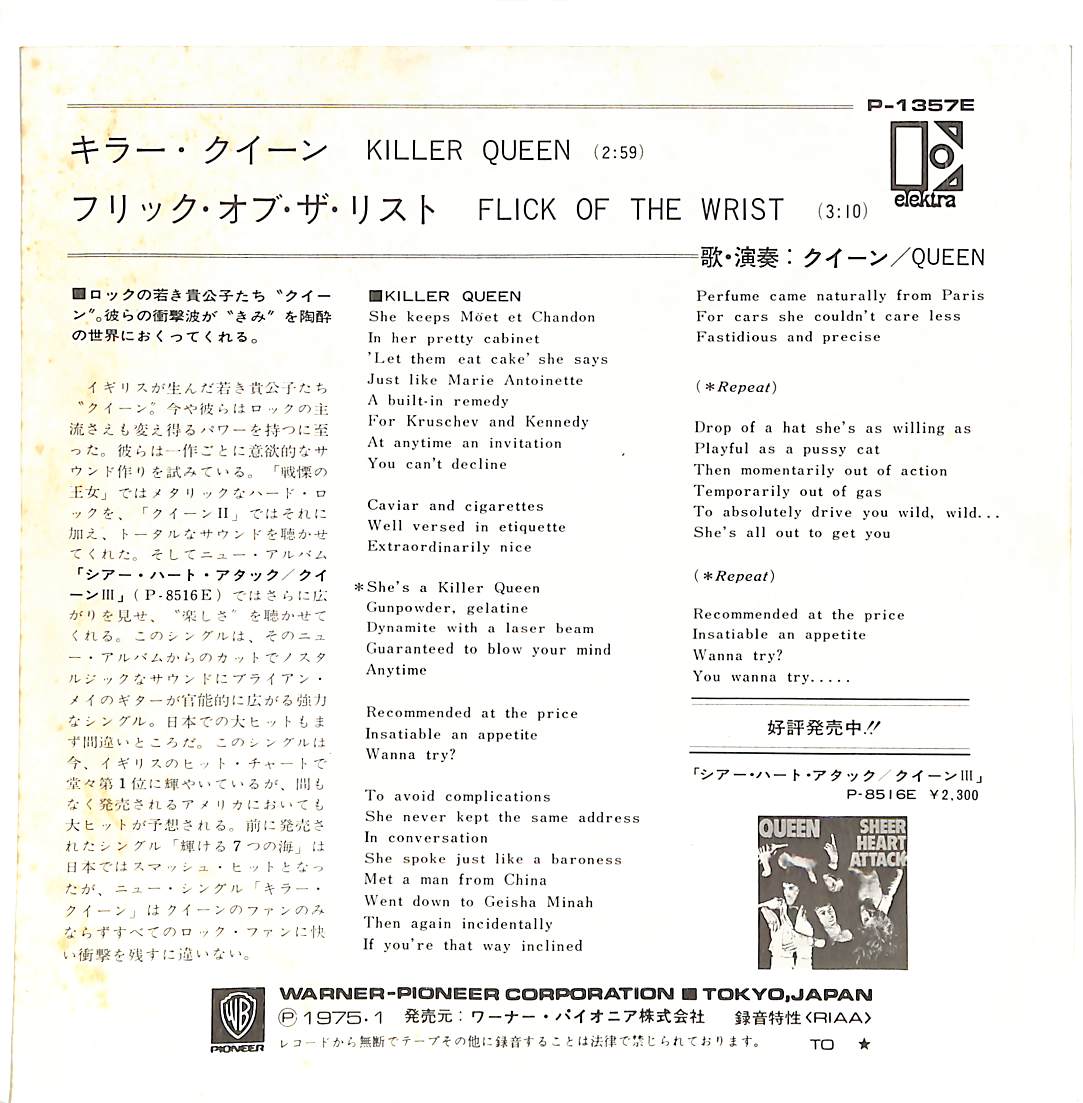 タイトル:キラー・クイーン / フリック・オブ・ザ・リスト (1975年)