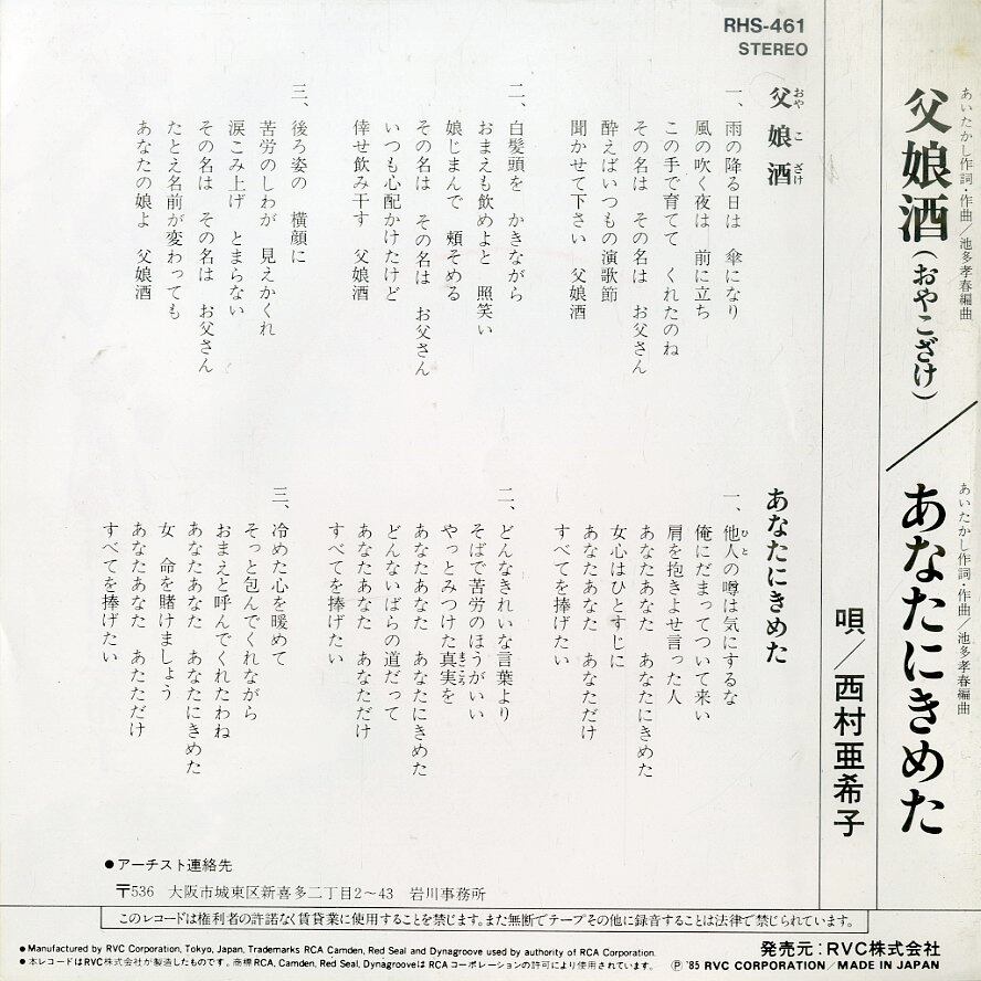 タイトル:父娘酒 / あなたにきめた(1985年)