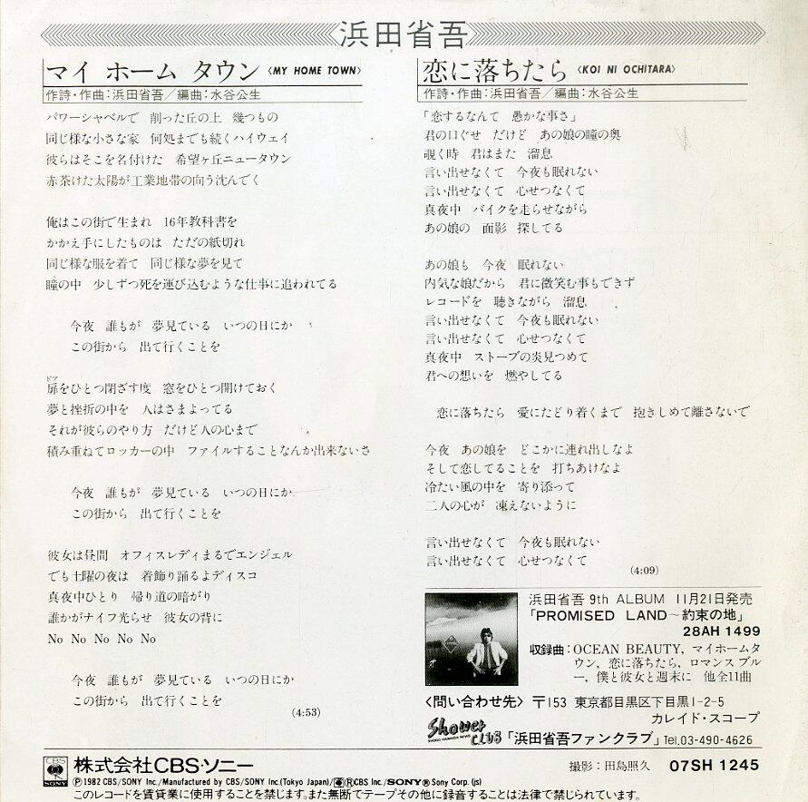 タイトル:マイホームタウン / 恋に落ちたら (1982年・水谷公生編曲)