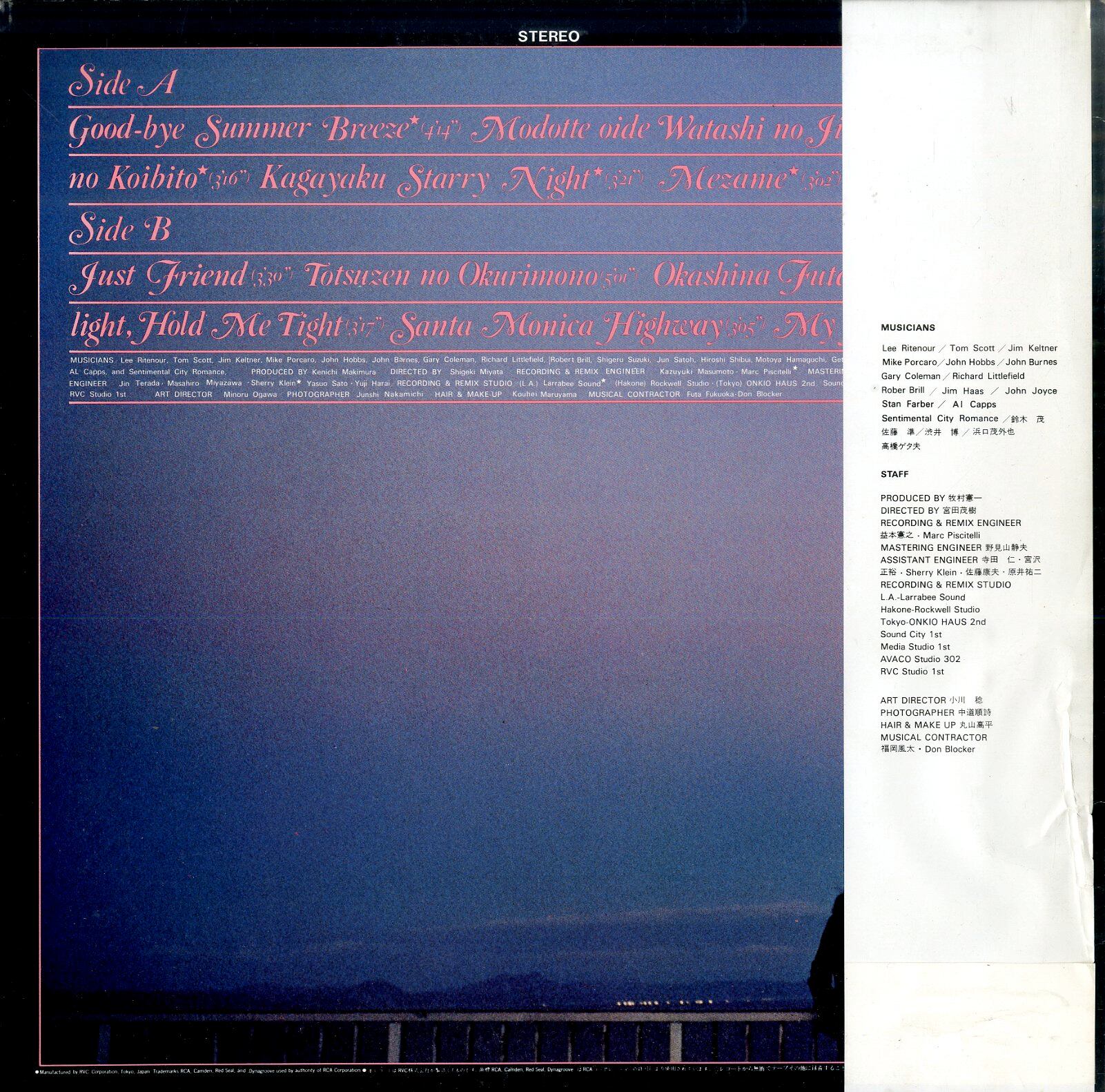 コメント:リー・リトナー、ジム・ケルトナー、SENTIMENTAL CITY ROMANCE、高橋幸宏参加・山下達郎・大貫妙子・細野晴臣作曲etc