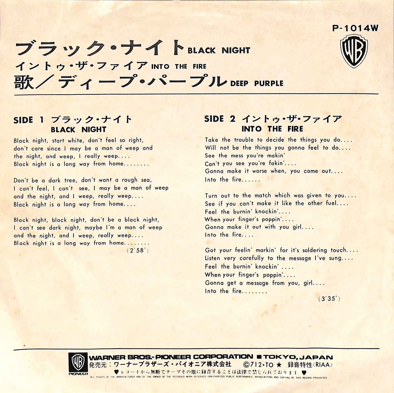 タイトル:Black Night / Into The Fire (1971年・ハードロック)