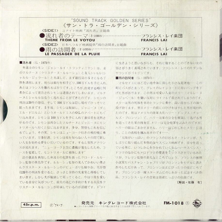 タイトル:heme From Le Voyou 流れ者のテーマ / Le Passager De La Pluie 雨の訪問者 OST (1972年・サントラ)