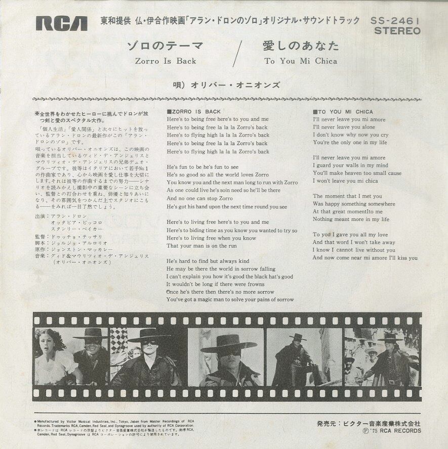 タイトル:アラン・ドロンのゾロ:ゾロのテーマ / 愛しのあなた
