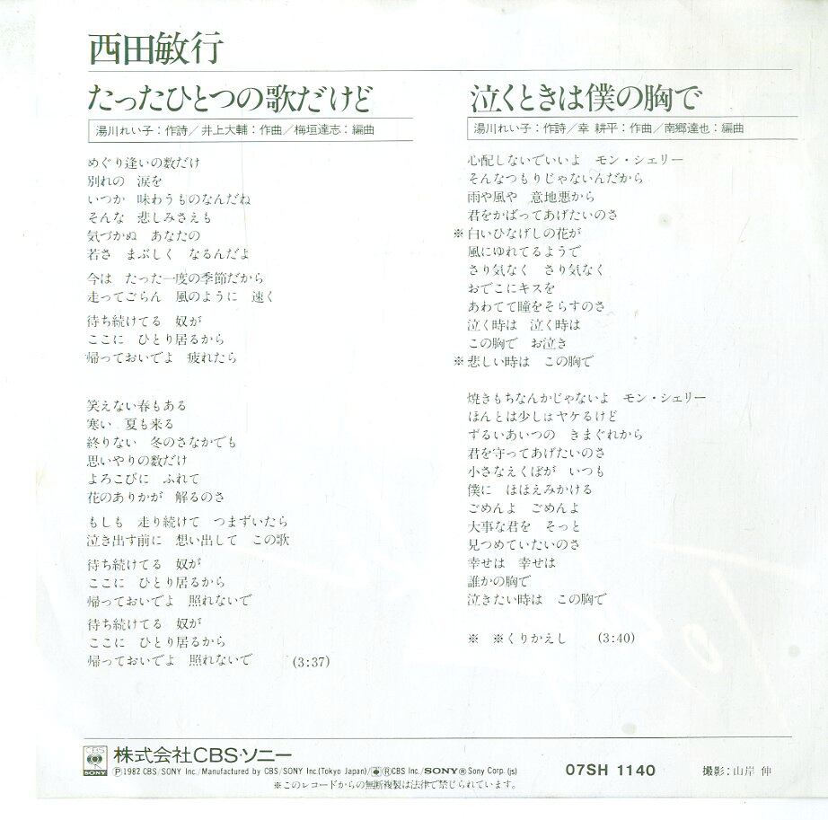 タイトル:たったひとつの歌だけど / 泣くときは僕の胸で