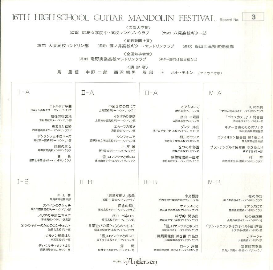 アーティスト:広島女学院中・高校マンドリンクラブ / 八尾高校ギター部 / 大妻高校マンドリン部/他