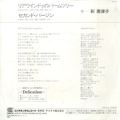 タイトル:リアウインドゥのパームツリー / セカンド・バージン