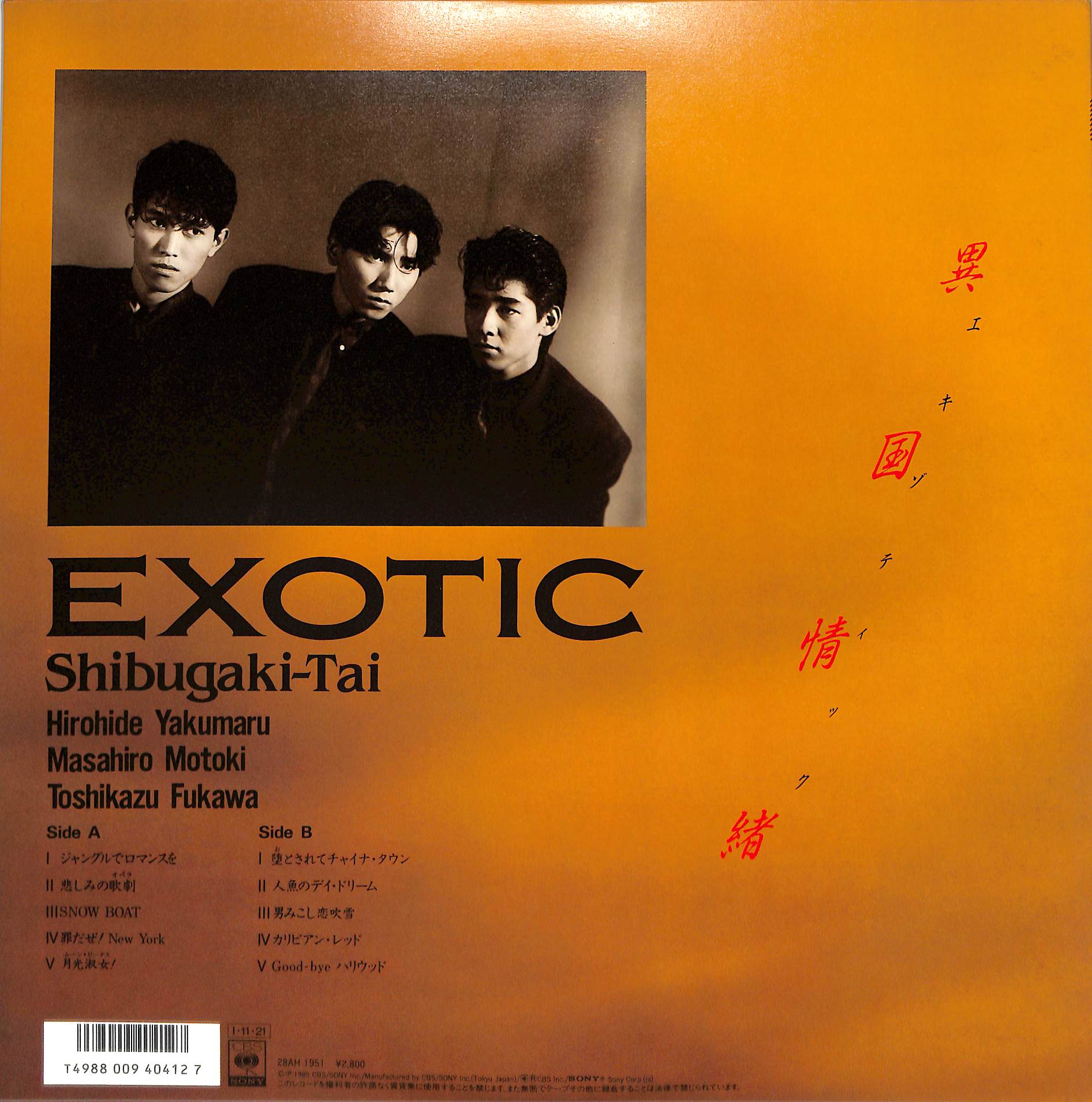 アーティスト:シブがき隊(布川敏和・本木雅弘・薬丸裕英)