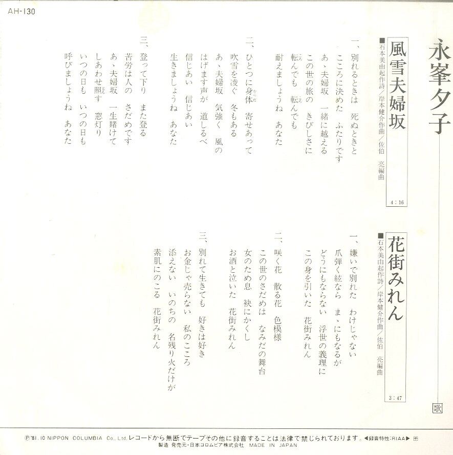 タイトル:風雪夫婦坂/花街みれん(1981年)
