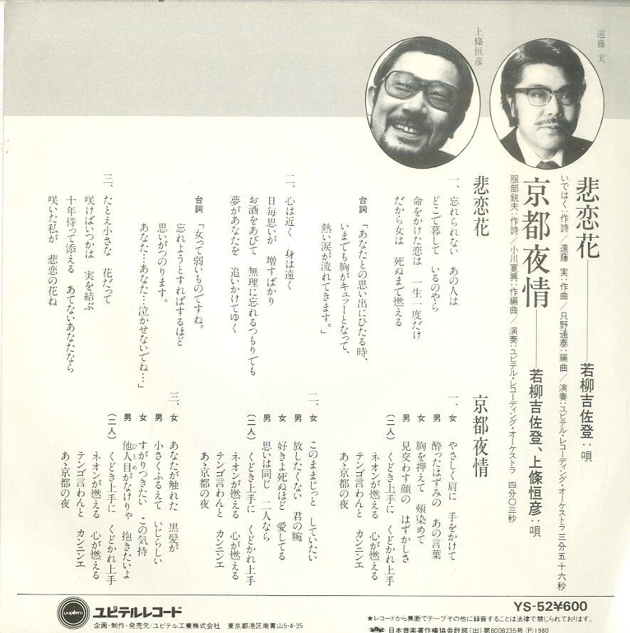 タイトル:悲恋花 / 京都夜情(若柳吉佐登・上條恒彦)