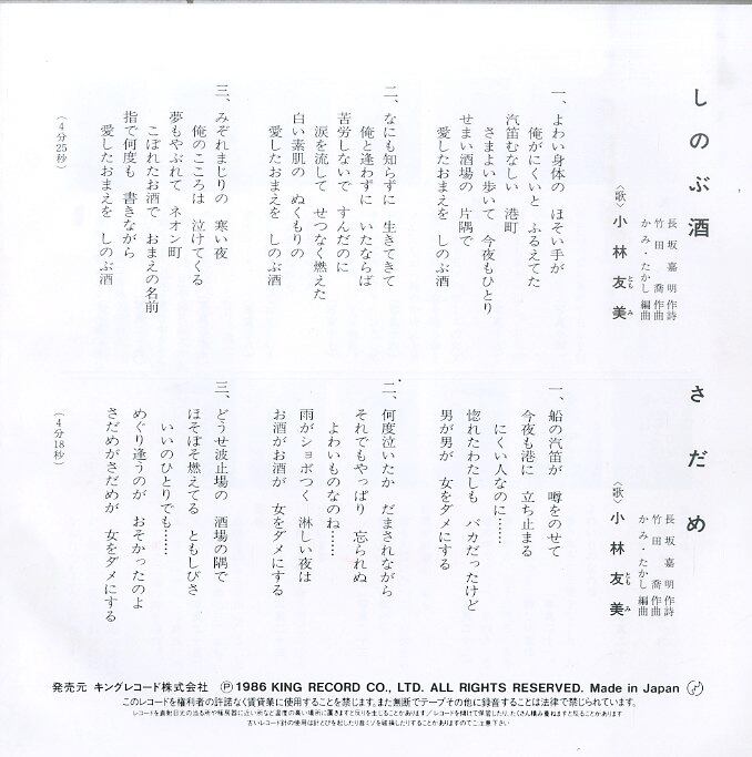 タイトル:しのぶ酒 / さだめ