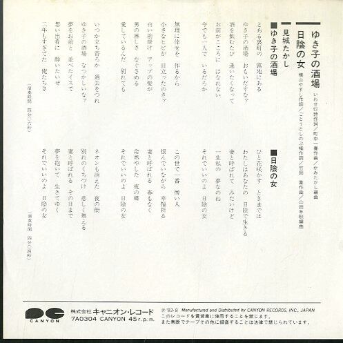 タイトル:ゆき子の酒場 / 日陰の女(作詞・横山やすし)