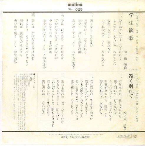 タイトル:學生演歌 / 遠く別れて