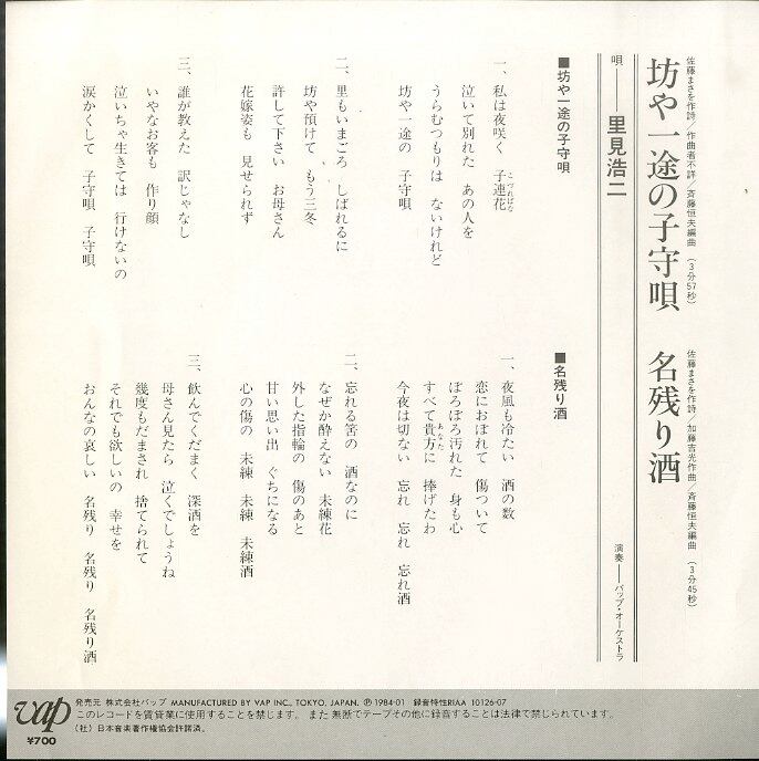 タイトル:坊や一途の子守唄 / 名残り酒
