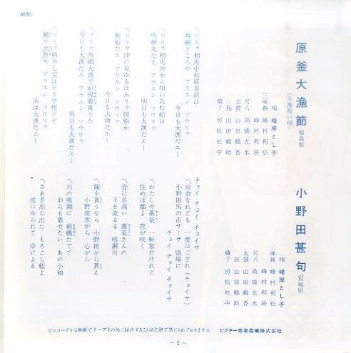 タイトル:原釜大漁節 / 小野田甚句(委託盤)