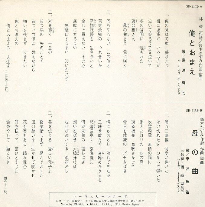 タイトル:俺とおまえ / 母の曲