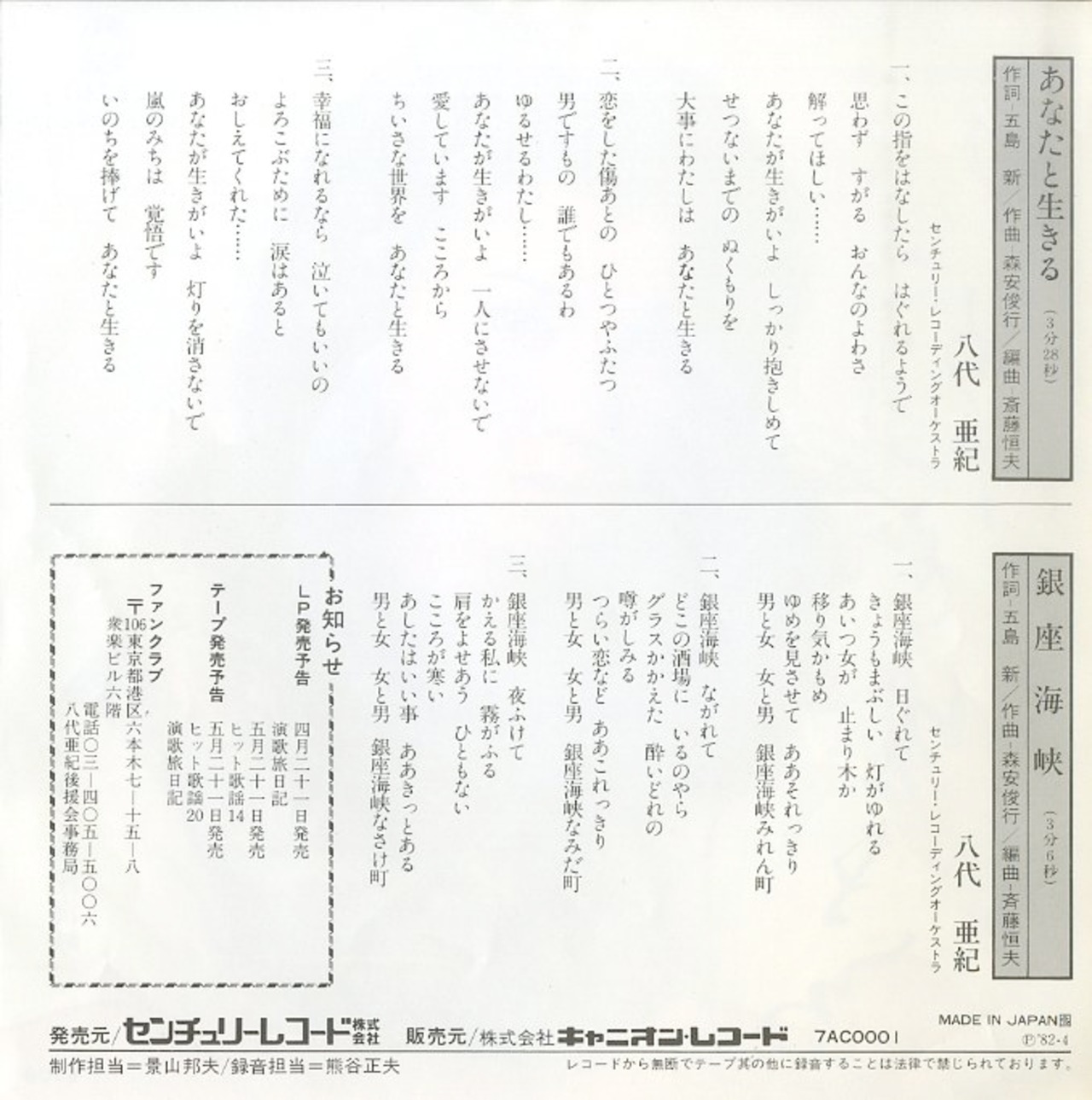 タイトル:あなたと生きる / 銀座海峡