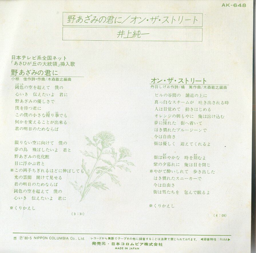 タイトル:野あざみの君に / オン・ザ・ストリート