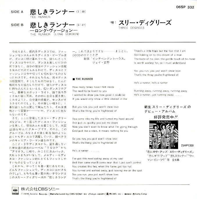 タイトル:悲しきランナー / 悲しきランナー(ロング・ヴァージョン)
