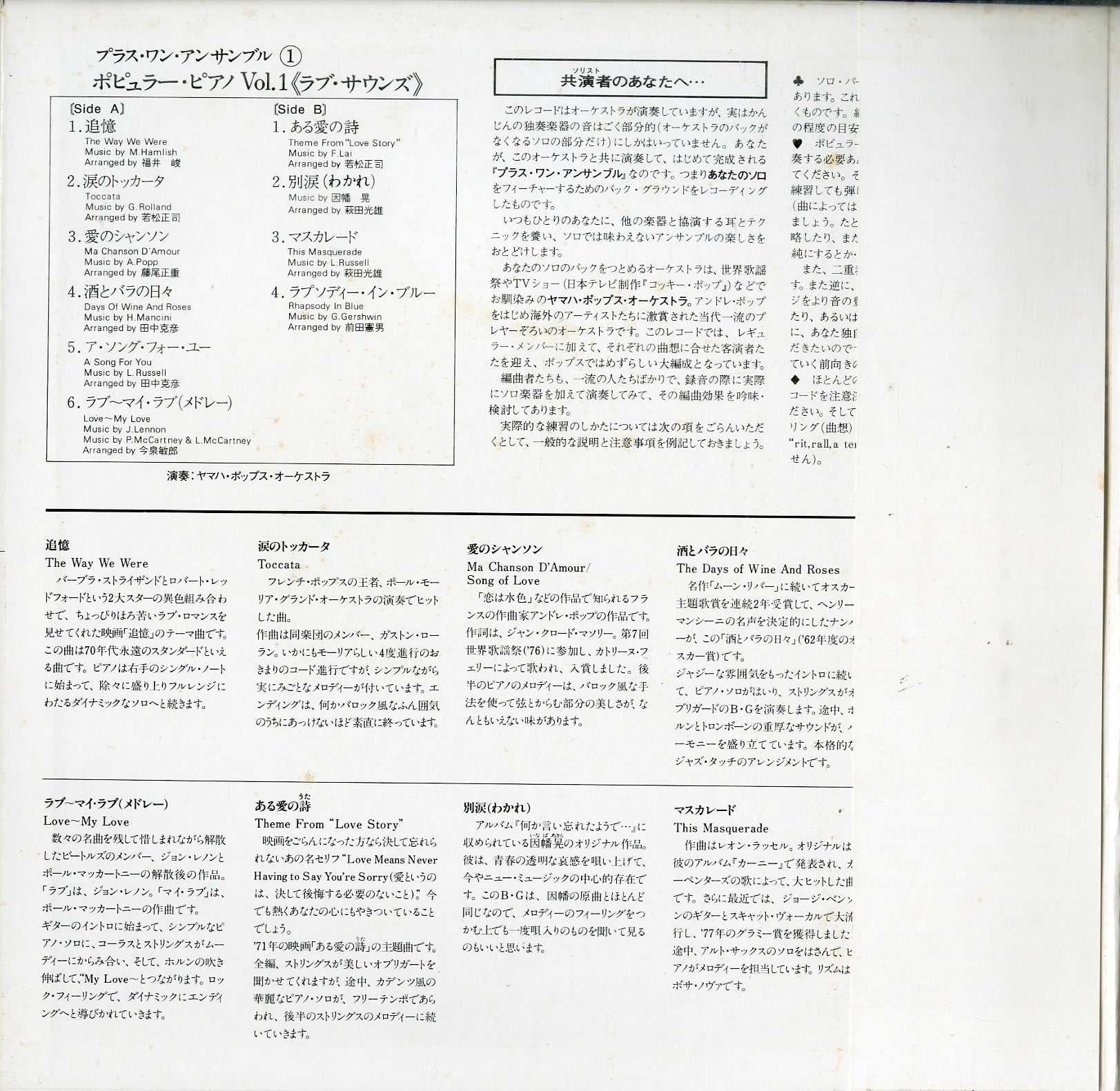 タイトル:ポピュラー・ピアノ Vol.1