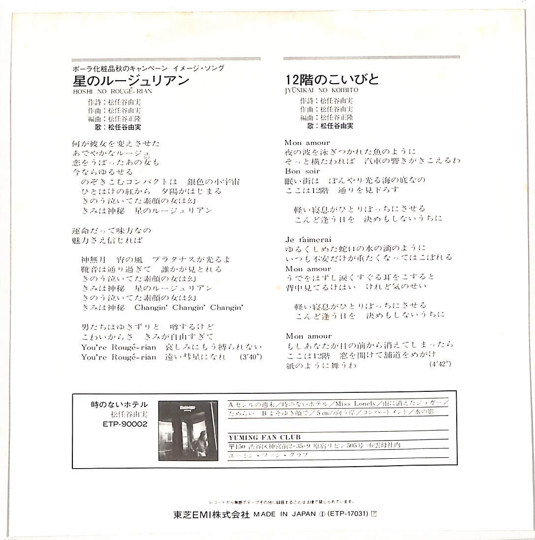 タイトル:星のルージュリアン / 12階のこいびと (1980年・TIN PAN ALLEY松任谷正隆編曲)